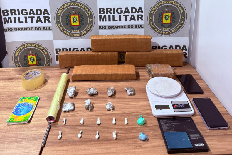 Ainda, em diligências complementares, foram localizadas mais drogas e materiais para embalo em uma residência. Em outro endereço, os policiais também encontraram uma mochila com quantidade significativa de maconha. Ao todo, houve a apreensão de cinco tijolos de maconha, sete porções menores da mesma droga, onze porções de cocaína, itens para embalagem, balanças de precisão, celulares e anotações. Os dois indivíduos detidos foram encaminhados à delegacia para registro e, após, ao Presídio Estadual de Venâncio Aires.