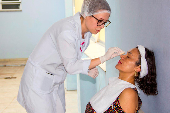 A atividade ocorreu em alusão ao Outubro Rosa. Realizada pelas estudantes do curso superior de Tecnologia em Estética e Cosmética, com a orientação da professora Greice Raquel Machado, é mais uma ação oferecida às usuárias da unidade de saúde.