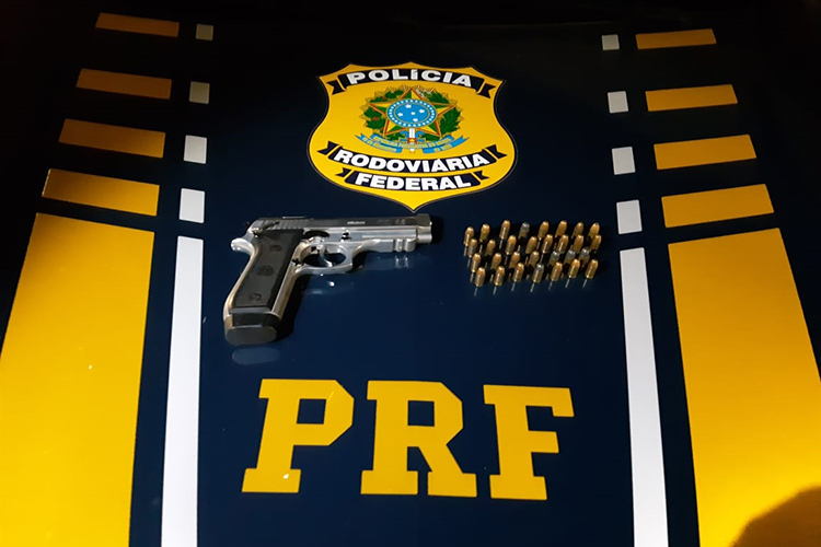 Após receberem informações do serviço de inteligência da PRF, policiais deram ordem de parada ao condutor de um Prisma com placas de Panambi. Ele desobedeceu a ordem e seguiu em fuga com o veículo. Os policiais conseguiram interceptá-lo à frente, logo depois que um dos passageiros jogou uma pistola pela janela.