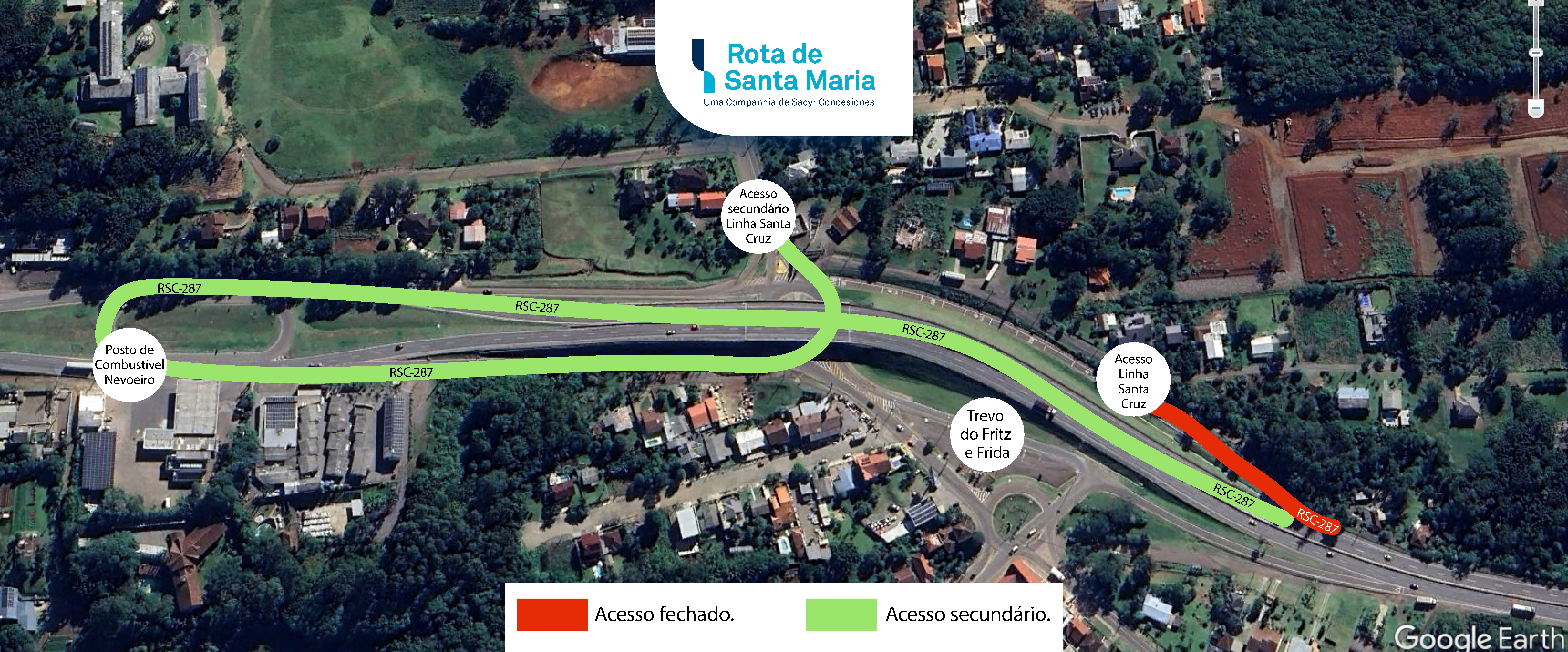 O acesso a Linha Santa Cruz, no quilômetro 99 da RSC-287, em Santa Cruz do Sul, estava fechado nesta segunda, 31, e terça-feira, 1º, para a realização de serviços no pavimento. No entanto, com o avanço da obra, foi constatada a necessidade de realizar reparo profundo no local, o que ocasionará o fechamento do acesso por mais tempo.