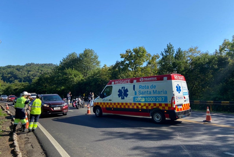 A caroneira da motocicleta, de 25 anos, caiu e teve ferimentos. Ela foi socorrida por uma equipe da ambulância da Rota de Santa Maria e encaminhada para atendimento médico no Hospital Santa Cruz. A suspeita é de que ela tenha fraturado a bacia, além de ter ferimentos no braço e escoriações. O caminhoneiro fugiu e não prestou socorro à vítima. A Brigada Militar também esteve no local.