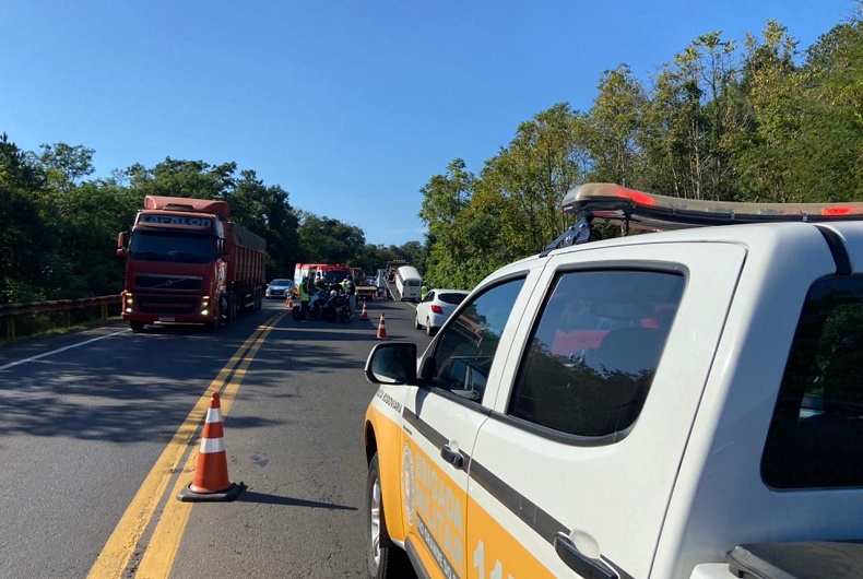 A caroneira da motocicleta, de 25 anos, caiu e teve ferimentos. Ela foi socorrida por uma equipe da ambulância da Rota de Santa Maria e encaminhada para atendimento médico no Hospital Santa Cruz. A suspeita é de que ela tenha fraturado a bacia, além de ter ferimentos no braço e escoriações. O caminhoneiro fugiu e não prestou socorro à vítima. A Brigada Militar também esteve no local.