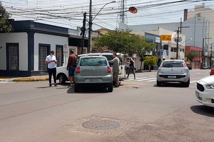 Um acidente de trânsito envolveu dois carros no Centro de Santa Cruz do Sul no fim da manhã desta quinta-feira, 8. A colisão aconteceu na esquina das ruas Ramiro Barcelos e Venâncio Aires. Envolveram-se um Fox, com placas de Santa Cruz do Sul, e uma Doblô, de Capela de Santana.