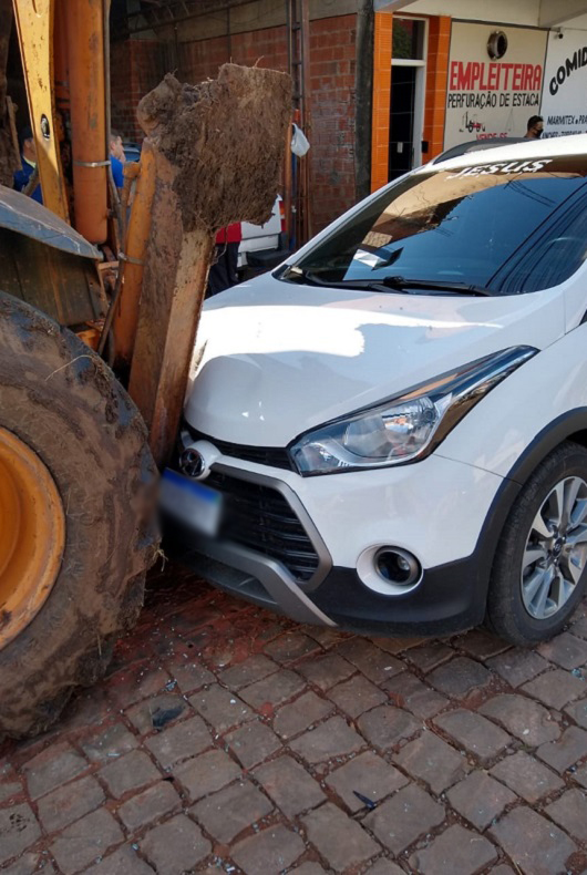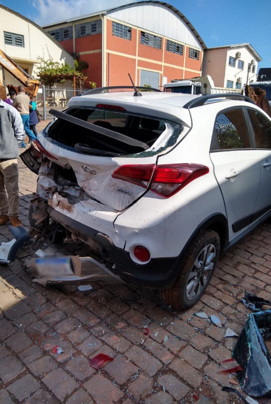 Um acidente de trânsito envolveu três carros e uma retroescavadeira no começo da tarde desta sexta-feira, 11, em Venâncio Aires. Conforme a Brigada Militar, envolveram-se na colisão um Santana, um Uno, um HB20 e a retroescavadeira. O caso aconteceu na esquina das ruas Voluntários da Pátria e Carlos Wagner, no Bairro Aviação.