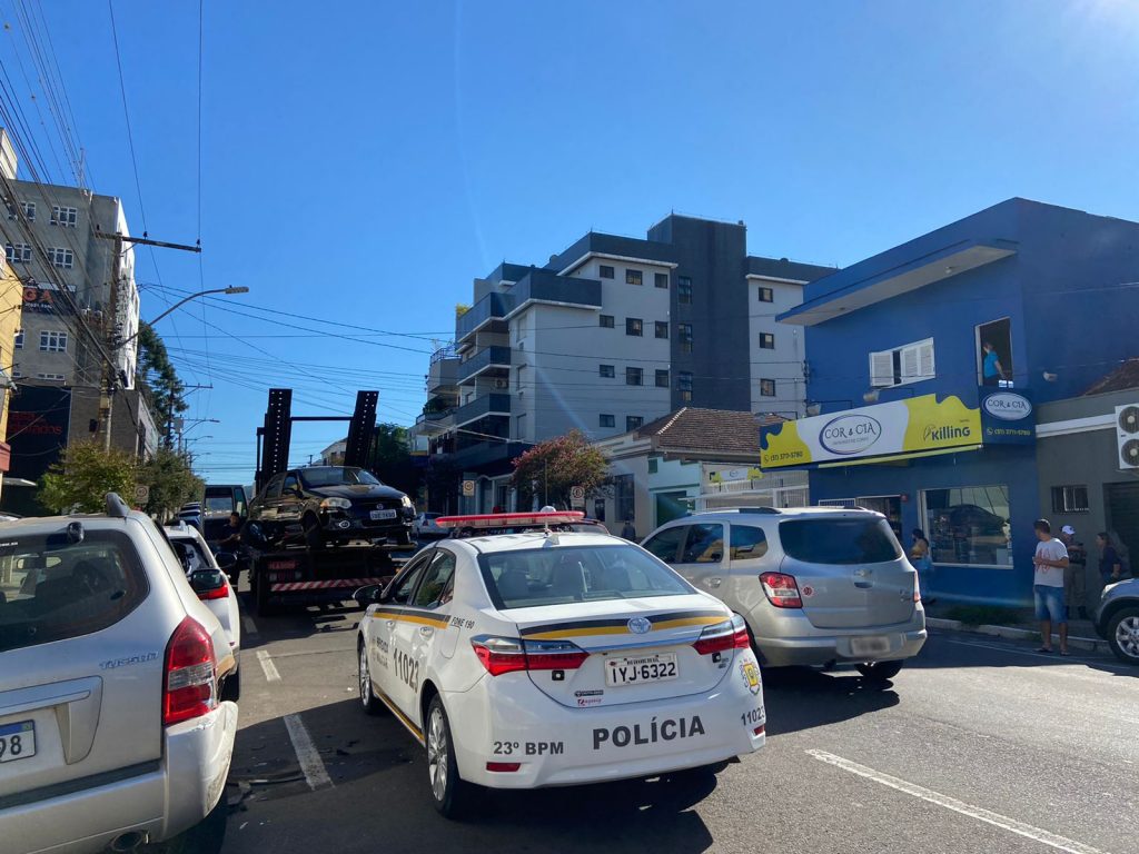 Um acidente envolvendo três carros deixou uma pessoa ferida na manhã desta segunda-feira, 28, no Centro de Santa Cruz do Sul. A colisão aconteceu por volta das 8h20 na Rua Venâncio Aires, entre as Ruas 28 de Setembro e Borges de Medeiros.