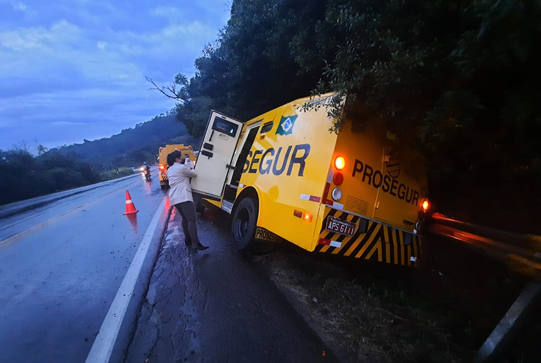 Um veículo de transporte de valores da empresa Prosegur se envolveu em um acidente no fim da tarde desta quarta-feira, 23, na RSC-287, em Santa Cruz do Sul. Segundo informações colhidas pela reportagem no local, a viatura seguia no sentido Venâncio Aires/Santa Cruz quando, no quilômetro 97, na altura de Linha Pinheiral, o condutor perdeu o controle, possivelmente por causa de uma aquaplanagem, e saiu da pista, colidindo com o guardrail.