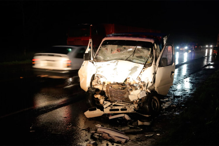 Com o impacto da batida, o veículo maior saiu para fora da pista e caiu em um matagal. O outro caminhão – que possuía carga – foi projetado para o outro lado da rodovia. O condutor deste veículo se feriu e foi encaminhado pela ambulância do Corpo de Bombeiros até o Hospital Santa Cruz. Ele segue em estado estável e realiza exames de precaução.