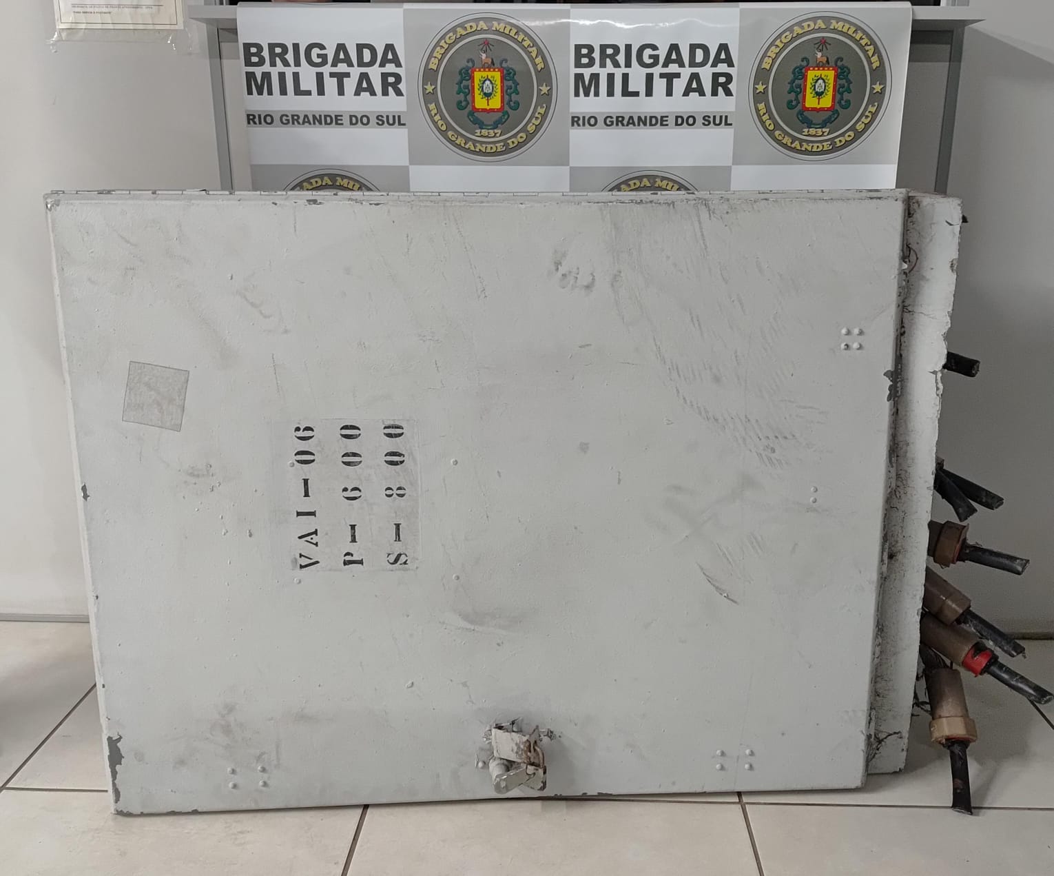 Na terceira ocorrência, por volta das 21h30, dois homens, de 39 e 20 anos, foram detidos por furto simples. A Brigada Militar foi acionada por populares, que viram os indivíduos levando uma caixa de distribuição de fios instalada na esquina das ruas 15 de Novembro e Osvaldo Aranha, no centro. Ambos foram conduzidos algemados à delegacia para registro, enquanto o material foi apreendido.