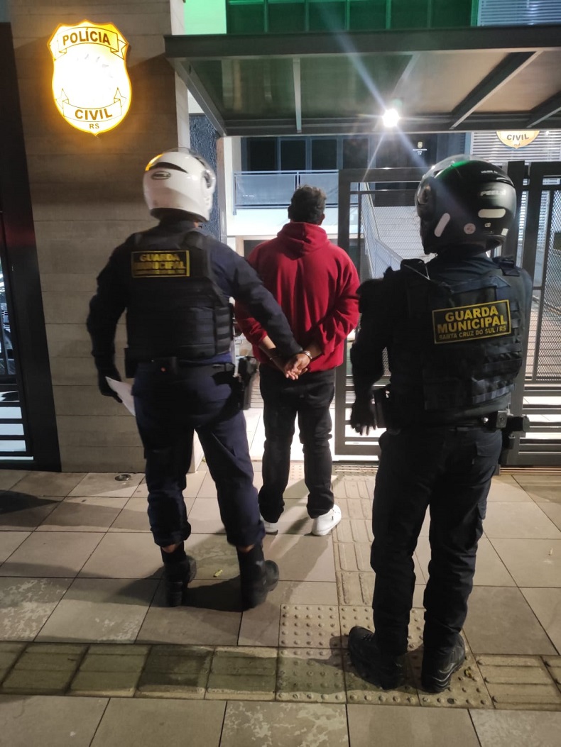 Na noite de sexta-feira, 17, durante patrulhamento em uma praça no Bairro Arroio Grande, os agentes avistaram um indivíduo que, ao perceber a presença da guarnição, tentou fugir a pé. Ele foi abordado nas proximidades de uma farmácia, momento em que foi confirmado também haver mandado de prisão contra ele. Após exames, o homem foi encaminhado à Delegacia de Polícia de Pronto Atendimento (DPPA).