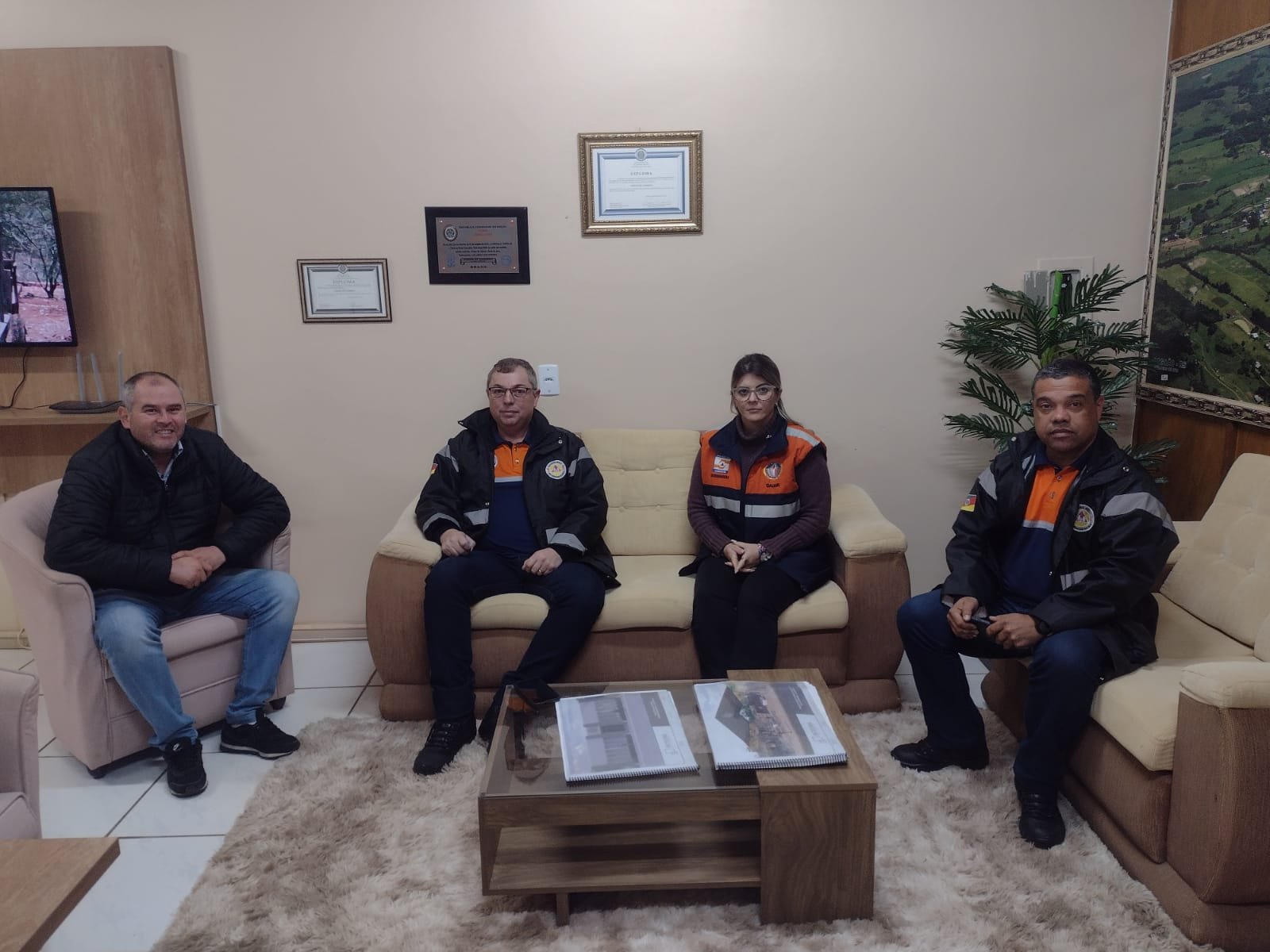 A Coordenadoria Regional de Proteção e Defesa Civil de Santa Maria – CREPDEC 3, esteve em Lagoão no final da tarde desta quinta-feira, 23 de junho. O coronel Jacob Pinton e o tenente Ivan estiveram reunidos com o prefeito Cirano de Camargo e a coordenadora municipal da Defesa Civil (COMDEC) de Lagoão, Daiani de Camargo, avaliando a situação do município em razão da tempestade de granizo que atingiu cerca de 60 residências. As localidades mais atingidas foram Alto da Serra, Linha Camargo e Santa Terezinha. Além dos danos causados pelo granizo, o alto volume de chuvas danificaram estradas em todo o município, fazendo com que as aulas da rede municipal fossem canceladas.