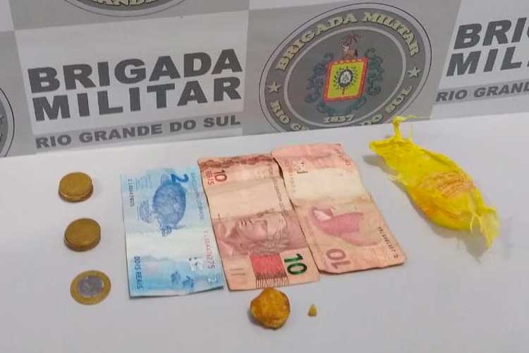 Com ele, foram encontradas duas pedras de crack, uma de tamanho médio e outra pequena, embalada para venda. De acordo com a Brigada Militar, a pedra média, ao ser fracionada, produziria de 45 a 50 pedras para venda.