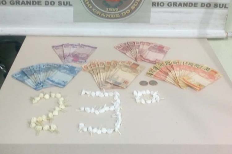 Um menor que estava vendendo drogas na rua foi apreendido pela Brigada Militar no fim da madrugada desta quinta-feira, 25, em Santa Cruz do Sul. Conforme a BM, ele foi localizado na Rua Professor Léo Winterle, no Bairro Santa Vitória. O adolescente, de 17 anos, tentou fugir quando viu as viaturas da polícia, mas foi pego em uma casa.