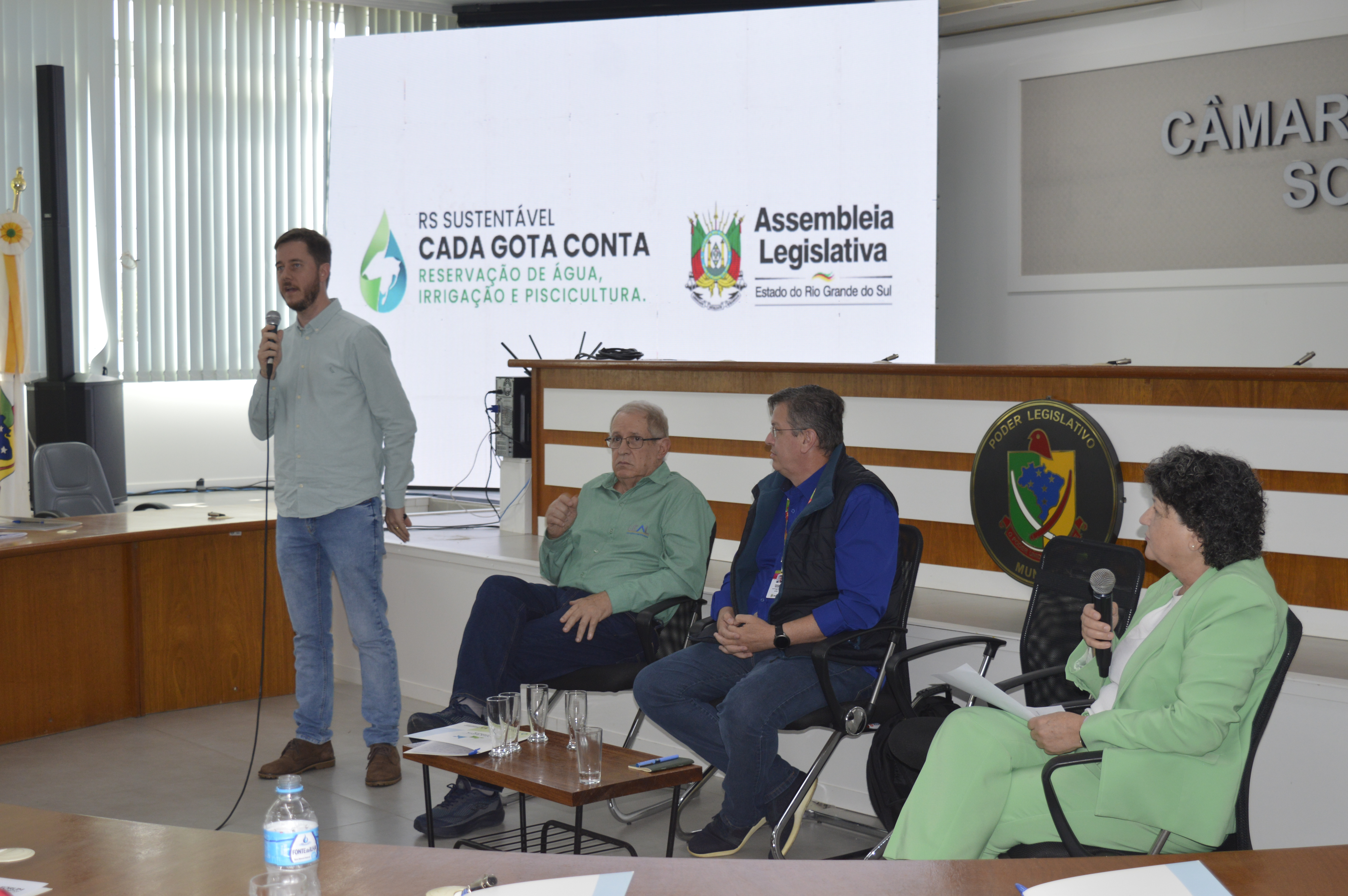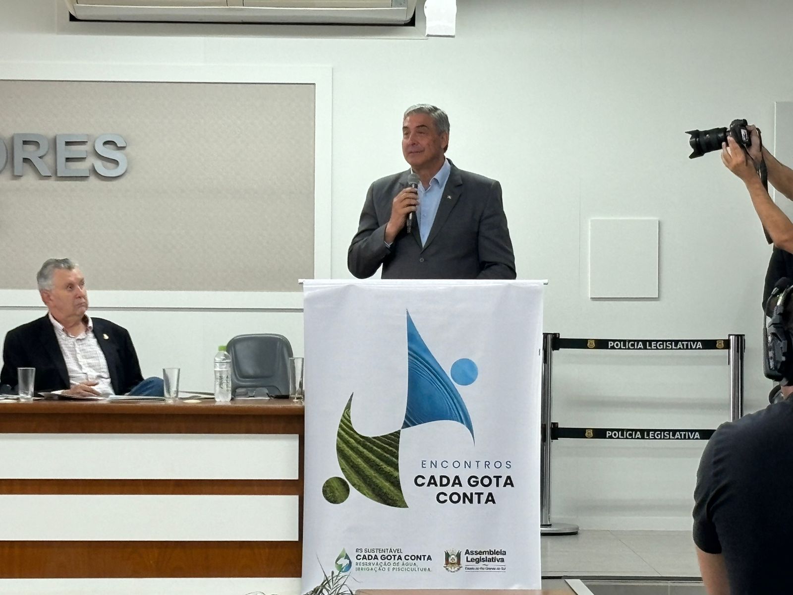 Com o auditório da Câmara de Vereadores de Sobradinho lotado, a presidência da Assembleia Legislativa do Rio Grande do Sul iniciou uma série de encontros para debater os pilares centrais de sua gestão 2024/2025, a reservação de água, irrigação e piscicultura. Sob o mote ‘RS Sustentável: Cada Gota Conta’, o presidente da ALRS, deputado Adolfo Brito (PP), convidou lideranças políticas e profissionais atuantes na área para dialogar com a comunidade regional.