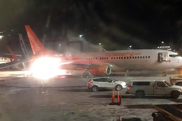 A WestJet informou na noite de sexta-feira que um avião vindo de Cancun, no México, com 168 passageiros e uma equipe de seis pessoas estava parado quando foi atingido por uma aeronave Sunwing. A porta-voz Lauren Stewart disse que os passageiros da WestJet foram evacuados da aeronave por meio das saídas de emergência, logo após a colisão.