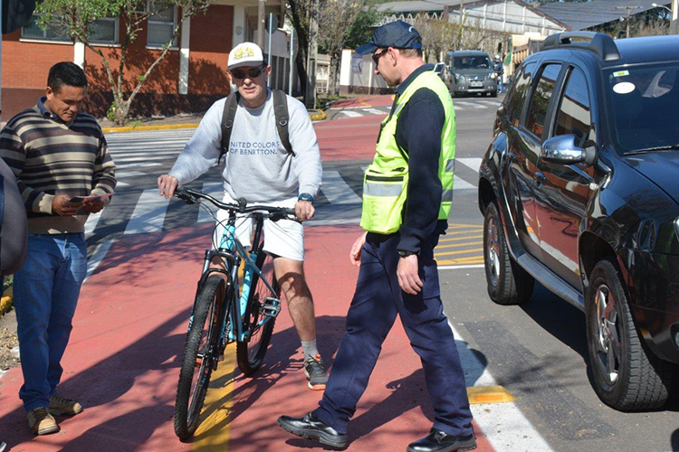 Em alusão ao Dia Nacional do Ciclista, agentes de trânsito, da Secretaria de Transportes e Serviços Urbanos (Setsu), realizam nesta segunda-feira, 19, uma ação educativa na ciclovia da Rua Assis Brasil, no Centro de Santa Cruz. Além de distribuir material informativo, passaram orientações aos condutores sobre legislação.