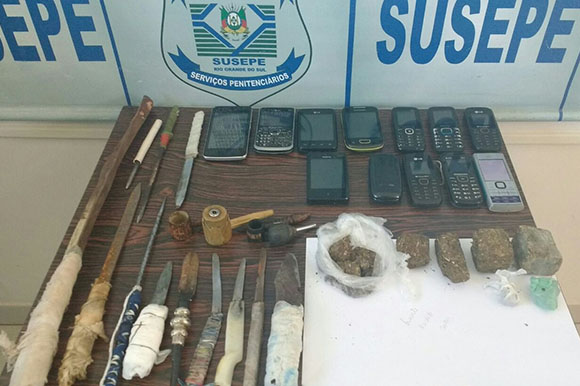 Segundo o delegado Regional da 8ª Delegacia Penitenciária Regional da (Susepe), Andreo Camargo, em entrevista no Giro Regional nesta manhã desta sexta-feira, foram encontradas oito porções de drogas, 13 aparelhos celulares, seis carregadores de celulares e estoques de facas artesanais durante a revista nas celas.