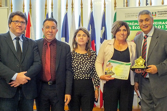 Indicada pelo deputado estadual Adolfo Brito (PP), Renilde Cembrani Raminelli, de Ibarama, recebeu nesta quarta-feira, 6, em solenidade no salão Júlio de Castilhos, o Prêmio Pioneiras da Ecologia 2017, na categoria “Individual Rural”, da Comissão de Saúde e Meio Ambiente da Assembleia Legislativa, na presença de amigos e familiares, incluindo o esposo Mario Raminelli, com quem mantém e cuida da propriedade de 13,5 hectares, do vice-prefeito de Ibarama, Silvano De Gaspari, bem como deputados estaduais e representantes de diversas entidades.