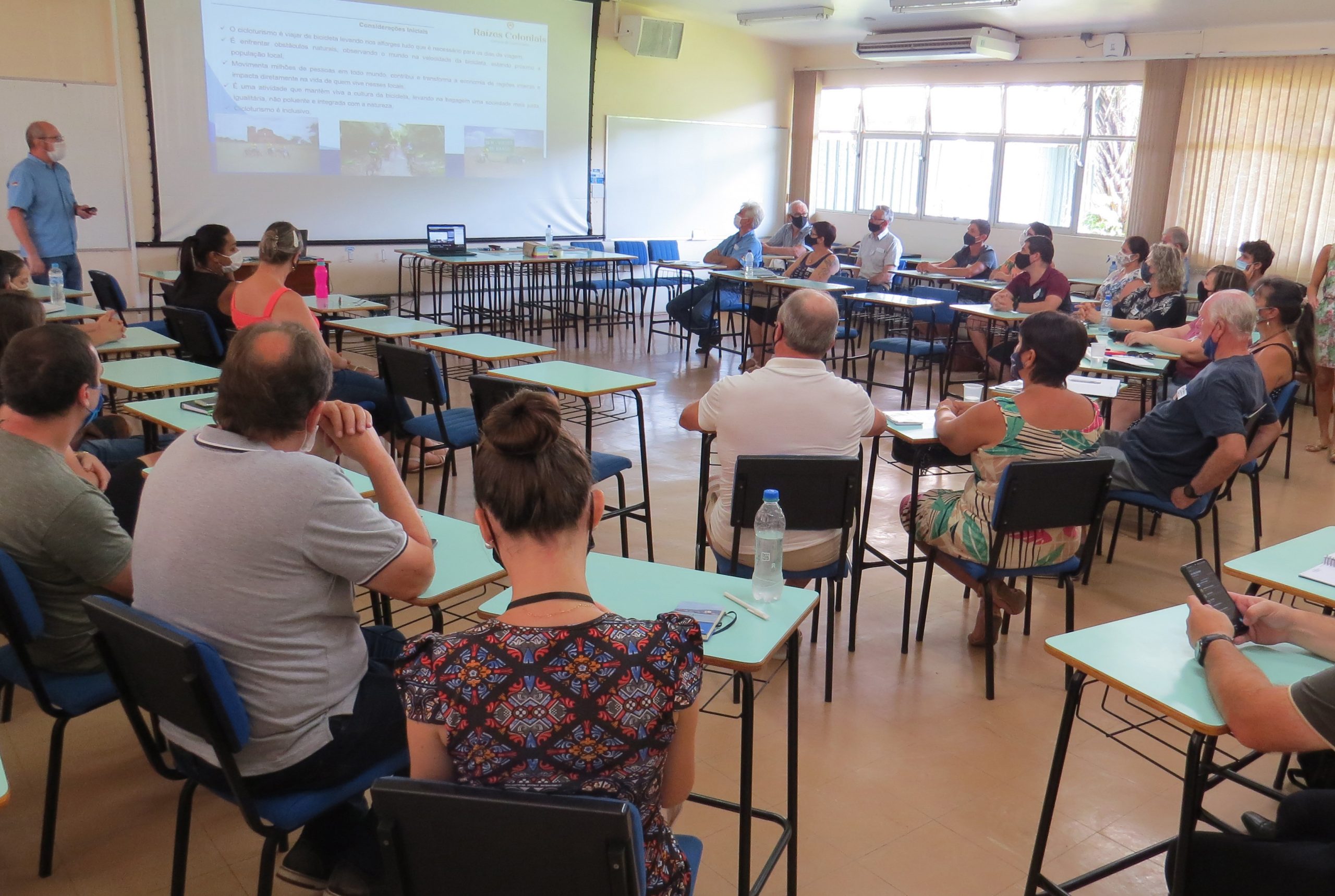 Agricultores do Vale do Rio Pardo que integram o Roteiro de Cicloturismo Raízes Coloniais participaram nessa quarta-feira, na Universidade de Santa Cruz do Sul (Unisc), de uma capacitação sobre turismo rural, com foco em bem-receber os visitantes. A atividade reuniu cerca de 40 empreendedores e foi promovida pela Emater/RS-Ascar, vinculada à Secretaria Estadual de Agricultura, Pecuária e Desenvolvimento Rural (Seapdr).