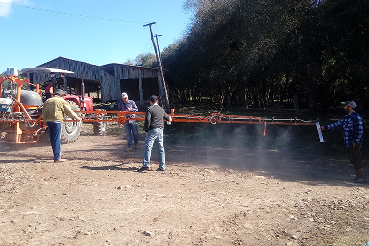 Já na última terça-feira do mês de julho, 31, também na casa do agricultor Egon Manske, o dia de campo foi sobre “Tecnologia de Aplicação”, onde na parte da manhã houve explicação teórica e exposição de diferentes bicos de pulverização, e na parte da tarde o Técnico desenvolveu atividades práticas de desgaste de bicos, aferição de RPM dos tratores, demonstração de bicos de pulverização e regulagem dos pulverizadores que estavam presentes, promovendo interação e envolvimento dos agricultores e ainda um maior entendimento sobre o assunto.