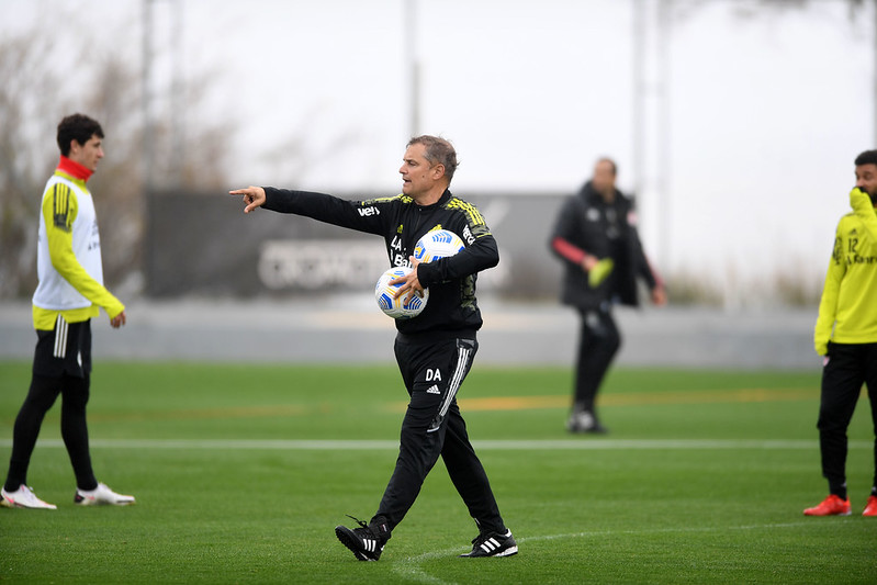 Durante a manhã desta quarta-feira, 4, o técnico uruguaio Diego Aguirre comandou uma atividade voltada para a troca de passes e intensidade no CT Parque Gigante, de olho no confronto do Internacional diante do Flamengo no domingo, 8, às 18h15, no Maracanã, pela 15ª rodada do Brasileirão. Desde a última semana, o comandante colorado tem focado na transição defensiva e ofensiva durante seus treinamentos.