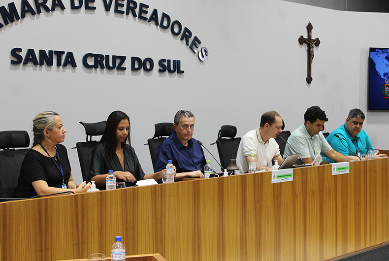 A Câmara de Vereadores de Santa Cruz do Sul realizou uma reunião especial na tarde dessa segunda-feira, 1º, para debater a questão da segurança no entorno do Albergue Municipal. A reunião foi requerida pelo vereador Francisco Carlos Smidt (PSDB) e contou com a presença da secretária de Desenvolvimento Social, Roberta Corrêa Pereira; Douglas Ramos, coordenador do Albergue Municipal; Juliano Garcês, advogado do CREAS; e Priscila Froeming, diretora de Desenvolvimento Social.
