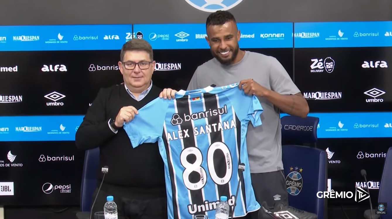 O volante Alex Santana foi apresentado pelo Grêmio nesta quarta-feira, 25. Ele recebeu a camisa 80 do vice de futebol Alexandre Rossato. O atleta passou pelo Internacional na base e nos primeiros anos de profissional. Agora no Tricolor, prometeu empenho dentro de campo.