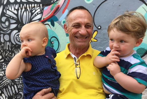 Alfredo com os netos Agnes e Enrico: dois amores em seu colo de avô | Foto: Divulgação/GS