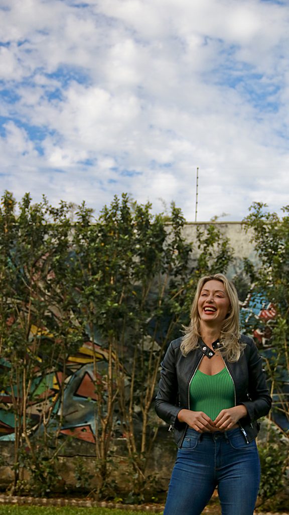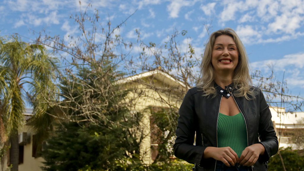 Entretanto, a jornada até realizar o sonho de ser atriz não foi fácil. Nascida em Sobradinho, ela viveu até os 5 anos no interior de Ibarama, onde agora existe a barragem da Usina Hidrelétrica Dona Francisca. A vida era simples, sem saneamento básico e sem energia elétrica, mas com um coração cheio de sonhos. “A criança do interior tem que ter uma criatividade muito grande, porque não tem televisão pra entreter, muito menos celular e internet. As nossas brincadeiras nós mesmos que tínhamos que inventar. Tem que ser criativa quando tem pouco, ainda mais eu, no interior e que ainda era muito pobre”, conta.