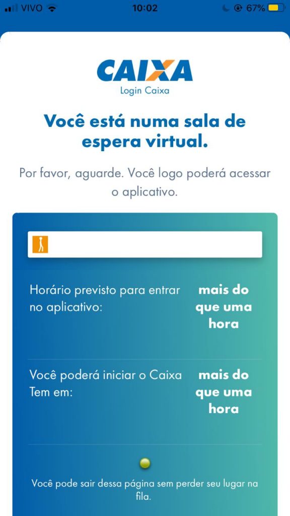 Muitos usuários têm reclamado das longas filas de espera – de mais de 10 minutos – para conseguirem acessar suas contas virtuais por meio do Caixa Tem. Muitas vezes, após esperarem o tempo estipulado pelo aplicativo, recebem apenas a mensagem de que o sistema estaria indisponível.