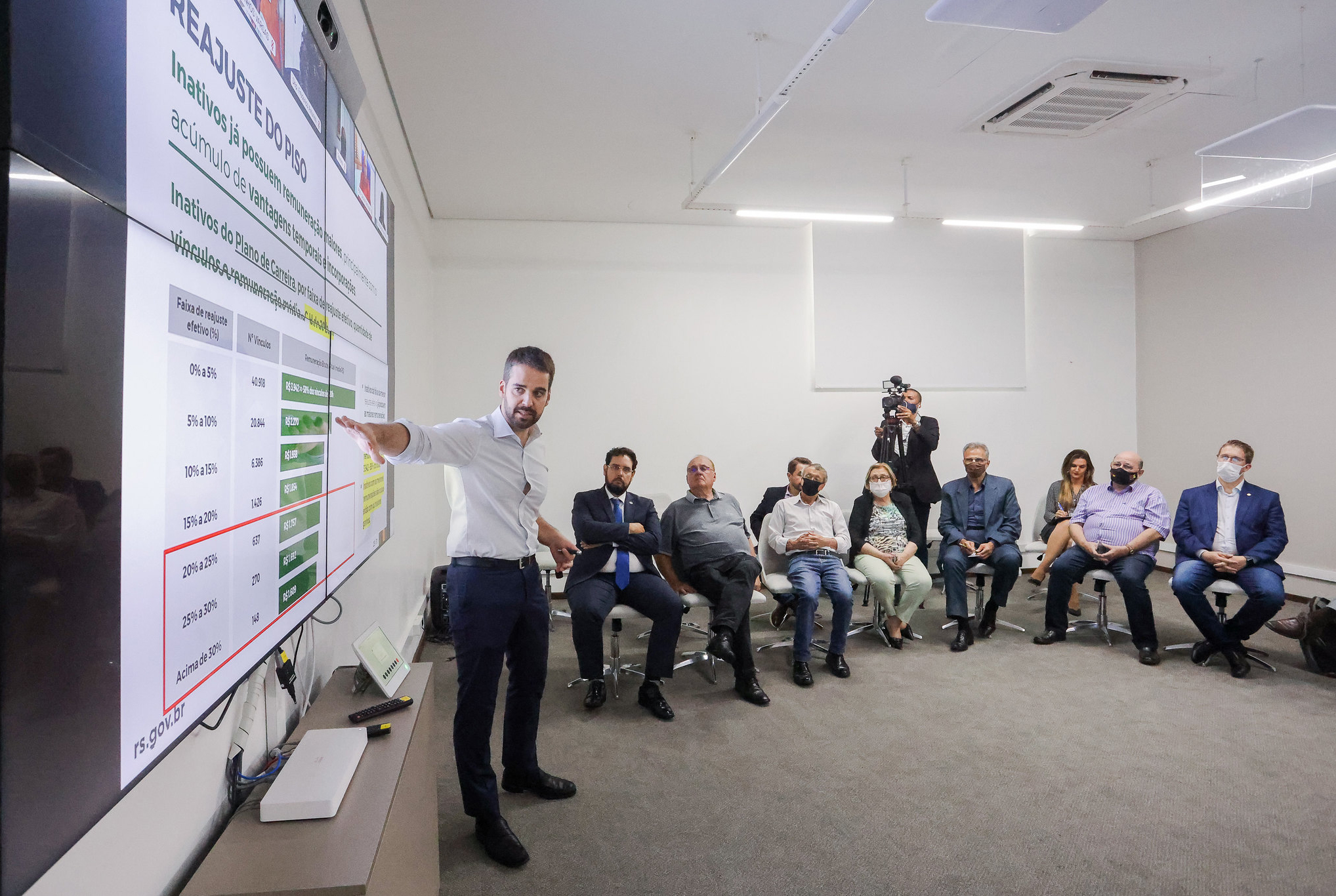 Secretário da Fazenda, Marco Aurelio Cardoso também destacou que o governo está apresentando uma proposta de acordo com os limites da responsabilidade fiscal e que há grandes riscos a que o Rio Grande do Sul segue exposto. Como exemplo, citou a decisão do Supremo Tribunal Federal (STF), que reconheceu a inconstitucionalidade da instituição de uma alíquota de ICMS majorada para a energia elétrica e para telecomunicações. Os Estados argumentam que não têm condições de sustentar redução de ICMS neste momento, e aguardam entendimento dos ministros para que a decisão passe a valer a partir de 2024. “A partir de janeiro, há risco de perda bruta de R$ 2,1 bilhões em receitas, caso o STF não forme maioria para apoiar os Estados. Por isso, os reajustes precisam considerar todos os cenários que se apresentam para 2022”, ressaltou.