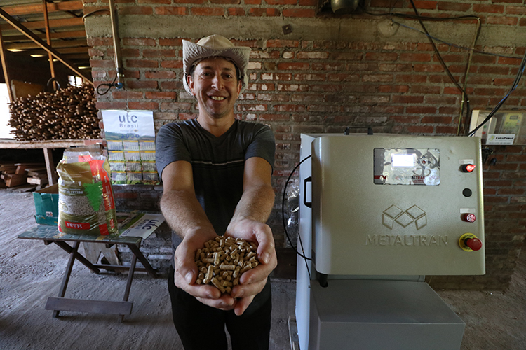 A utilização de energias renováveis é considerada uma das soluções para a preservação do meio ambiente. Através do queimador de biomassa pellet, a proposta é apresentar uma solução de energia renovável e com investimento reduzido para os produtores. Os pellets são fabricados com resíduos de madeira, o que os torna um combustível renovável e ecologicamente correto. Conforme Junior Haas, da Haas Paletes, parceira do projeto, o pellet é seco e compactado e gera muita energia por metro cúbico. “Reduzimos o volume e concentramos energia”, explica.