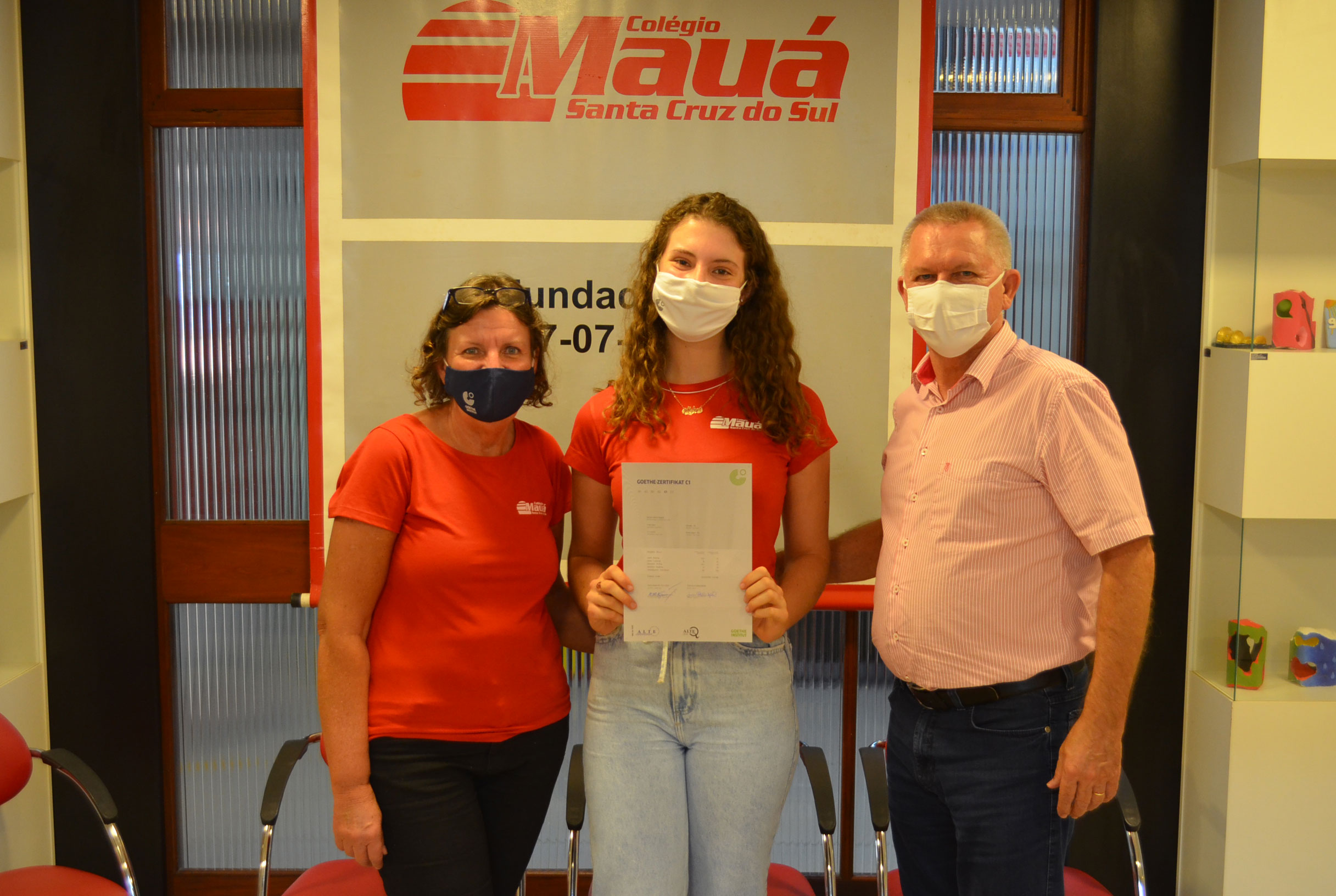 “Para o Colégio Mauá, é um grande orgulho ver uma aluna alcançar tão grande resultado, garantindo seus estudos na Alemanha”, salienta o diretor do Mauá, Nestor Raschen. A professora Marlise Müller explica que a possibilidade de estudar em uma universidade alemã é viável mediante parceria entre o Goethe Institut e o Colégio Mauá.