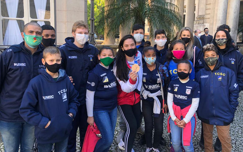 Na última terça feira, 3, a equipe de judô do Tênis Clube Santa Cruz esteve em Porto Alegre para recepcionar os medalhistas olímpicos do judô, Mayra Aguiar e Daniel Cargnin.