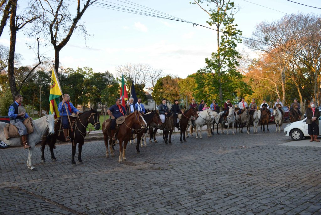 As tradições gaúchas ganham ainda mais evidência no mês de setembro. Em Sobradinho, a solenidade de abertura da Semana Farroupilha 2021 ocorreu ao entardecer dessa quarta-feira, 15, no CTG Galpão da Estância. A Chama Crioula que permanecia guardada na Loja Maçônica Aôr e Harmonia, no bairro Vera Cruz, foi levada em cavalgada até a sede da entidade, onde ocorreram os atos oficiais de acendimento da Chama, hasteamento das bandeiras e pronunciamentos.