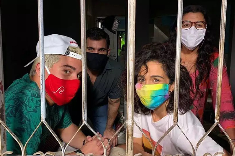 No dia 19 de agosto, Thiago, que interpreta Ryan na trama, também compartilhou uma foto com Regina, intérprete de Dona Lourdes, no Instagram mostrando as mudanças nas gravações da novela, como proteção para evitar o contágio do coronavírus.