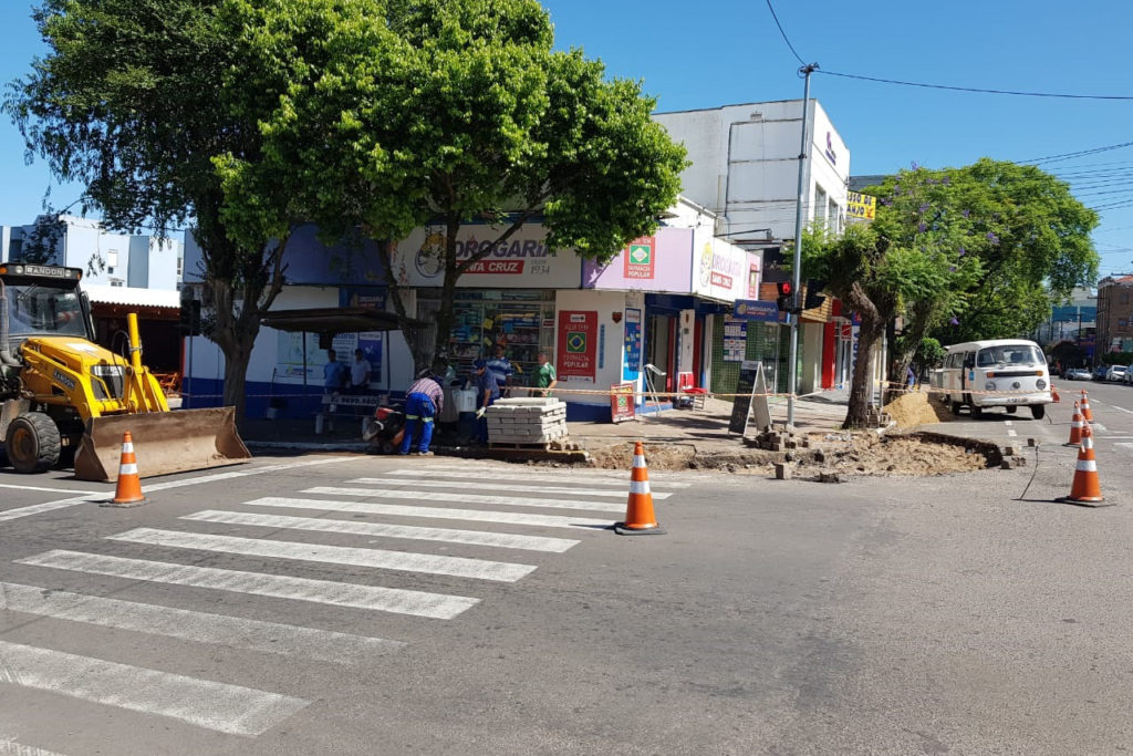 Motoristas que circulam pelo Centro de Santa Cruz do Sul devem ficar atentos à alteração no trânsito na Rua Fernando Abott, próximo da esquina com a Tenente Coronel Brito nesta quinta-feira, 28. O fluxo de veículos está em uma pista no entroncamento entre as duas vias. A Secretaria de Obras e Infraestrutura realiza o trabalho de ampliação da calçada nas esquinas.