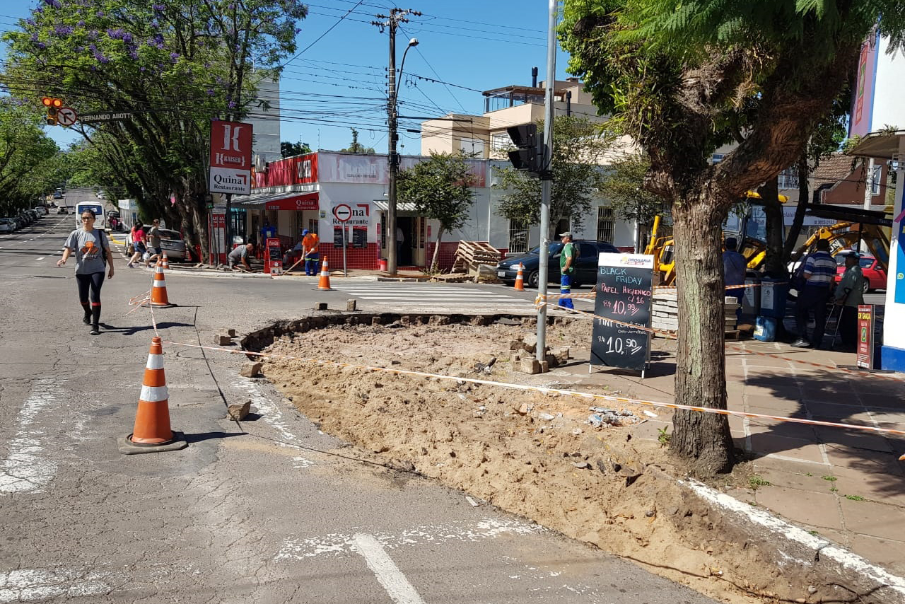 Motoristas que circulam pelo Centro de Santa Cruz do Sul devem ficar atentos à alteração no trânsito na Rua Fernando Abott, próximo da esquina com a Tenente Coronel Brito nesta quinta-feira, 28. O fluxo de veículos está em uma pista no entroncamento entre as duas vias. A Secretaria de Obras e Infraestrutura realiza o trabalho de ampliação da calçada nas esquinas.