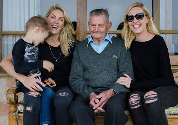 A santa-cruzense Ana Hickmann aproveitou as férias e veio visitar os parentes em Santa Cruz do Sul. Ela veio ao município com o filho, Alexandre Júnior, o marido Alexandre e a irmã. Nessa terça-feira, 18, ela postou uma foto da família no Instagram em comemoração ao aniversário de avó. “Bom dia com a foto do cara mais incrível do mundo!! Meu avô Rocchus Saath. Esta semana ele completa 81 anos. Como eu amo meu vô. #familia #granfather #vô”, relatou.