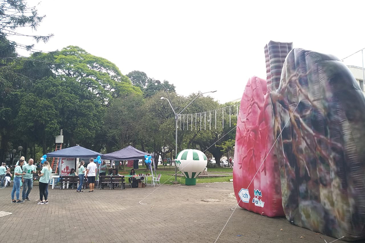 O Hospital Ana Nery promoveu um evento pelo diagnóstico precoce do câncer de pulmão, chamado Ar Puro, na manhã de sábado. A iniciativa, em parceria com a Roche Farmacêutica, foi realizada na Praça Getúlio Vargas, das 9 horas até as 13 horas e contou com um pulmão inflável, em tamanho grande, que chamou a atenção de quem circulou pelo Centro de Santa Cruz do Sul.