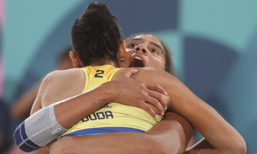 Ana Patrícia e Duda serão as representantes do Brasil na briga por medalha no vôlei de praia na Olimpíada de Paris 2024. A dupla superou as letãs Tina e Anastasija por 2 sets a 0, com parciais de 21/16 e 21/10, após um susto no início do primeiro set, quando as rivais chegaram a abrir 6/0 no placar.