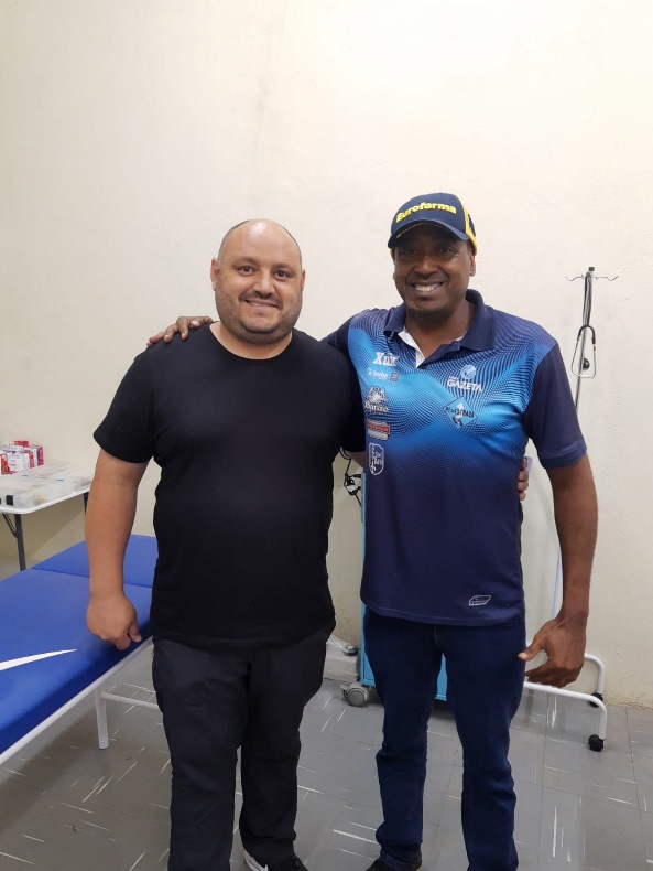 O moço que está comigo na foto abaixo é o responsável direto pelo ambulatório médico dentro do evento. O paulista Juliano Silva volta a Santa Cruz com a Stock Car e, claro, trata de coordenar toda a estrutura que garantirá o bem-estar do staff do evento. Nós nos conhecemos há alguns anos, durante uma das provas da categoria, e ele inclusive me socorreu em uma das etapas no Veloccitá, em Mogi-Guaçu, quando tive um contratempo por lá. Foi bacana agora poder rever ele aqui por Santa Cruz.