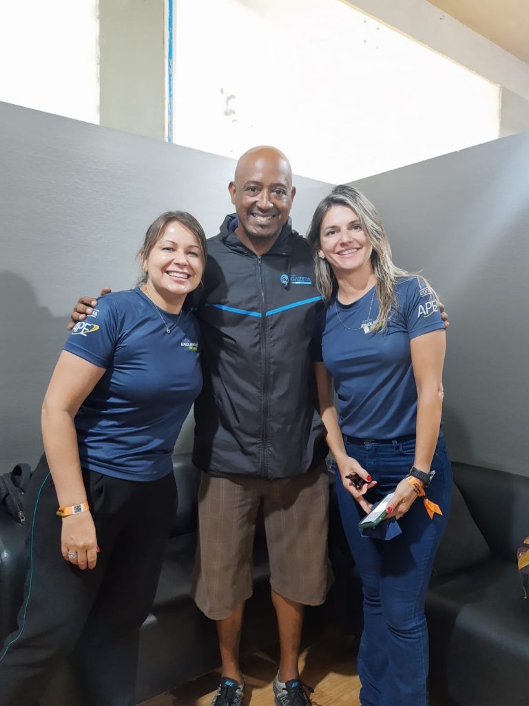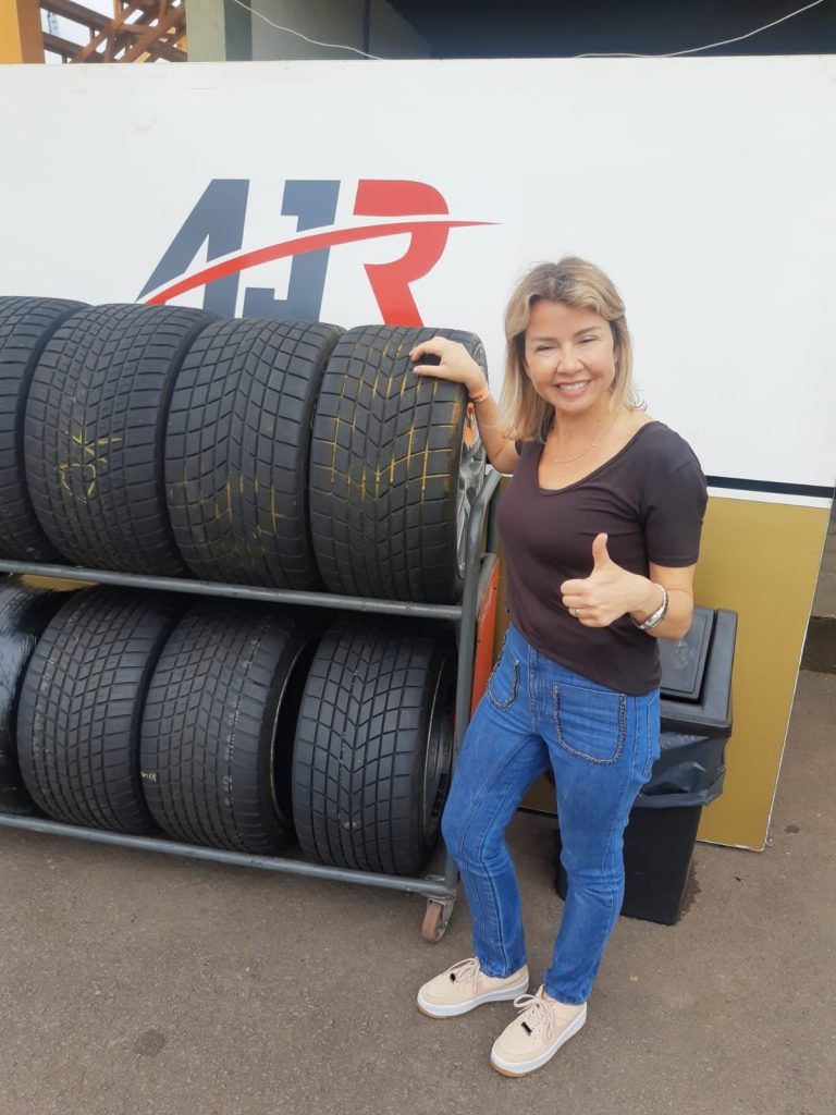 Na Endurance, chama a atenção a participação decisiva das mulheres. Na foto acima, estou ao lado de Glauce Schütz (esq.) e Juliana Marques. Glauce é a CEO da categoria e Juliana é jornalista. Abaixo está Francelis Moro, a Fran, irmã de Juliano Moro, dono da equipe dos protótipos AJR Race, que ajuda na logística, em pneus, rádio… É uma faz-tudo na equipe. São apenas três das mulheres que dão um toque todo especial para o sucesso do evento.