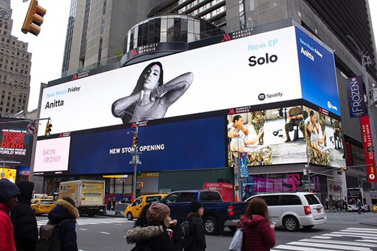 Divulgação de EP da artista brasileira em letreiro luminoso da Times Square, em 2018