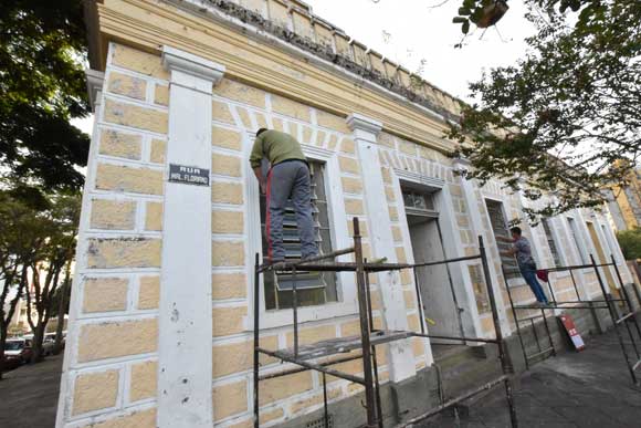 Um mês e meio após anunciar que vai transferir a Biblioteca Pública Municipal para a antiga cadeia, a Prefeitura de Santa Cruz começou a mexer na parte externa do prédio histórico da esquina das ruas Marechal Floriano e Tiradentes. Em um primeiro momento, estão sendo substituídas vidraças e esquadrilhas. Depois, haverá a limpeza da fachada e será construído um acesso para cadeirantes. O passo seguinte, que depende de parecer favorável do Conselho Municipal de Planejamento Urbano (Compur), será a pintura.