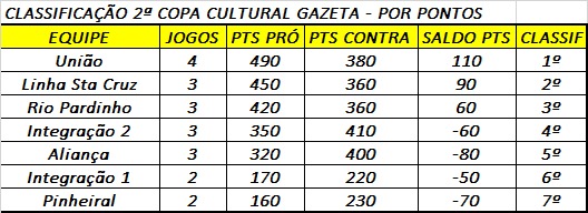 A Copa Cultural Lifasc teve nesta terça-feira, 13, sua quinta e antepenúltima rodada da fase classificatória. Os confrontos da noite foram Rio Pardinho x Integração 2, seguido por União x Pinheiral.