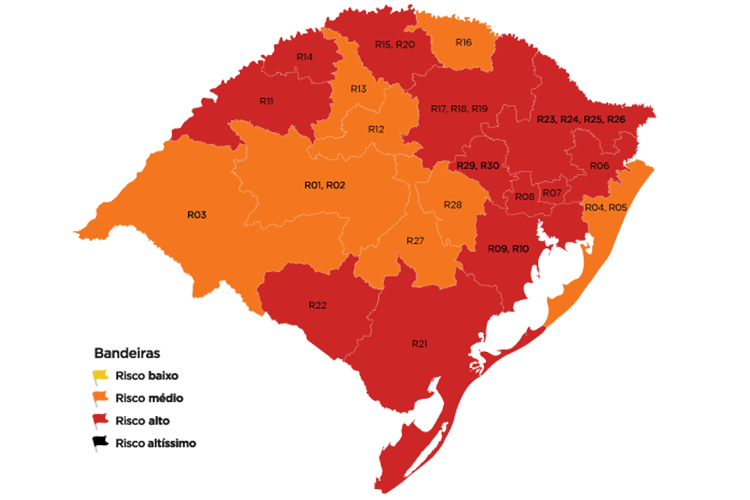 O mapa preliminar, divulgado nesta sexta, trouxe 12 das 20 regiões do Estado em bandeira vermelha, de risco alto, entre elas a região de Lajeado, vizinha à de Santa Cruz.