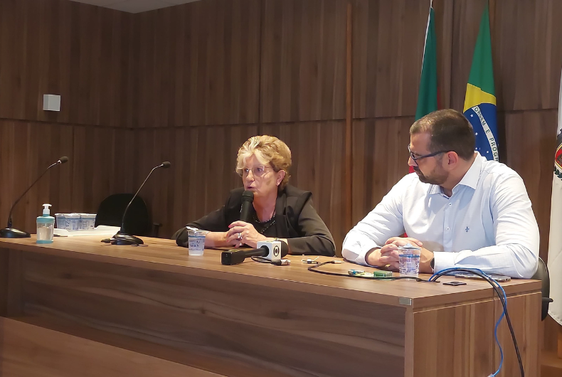 Helena Hermany concedeu entrevista coletiva ao lado do secretário Everson Bello