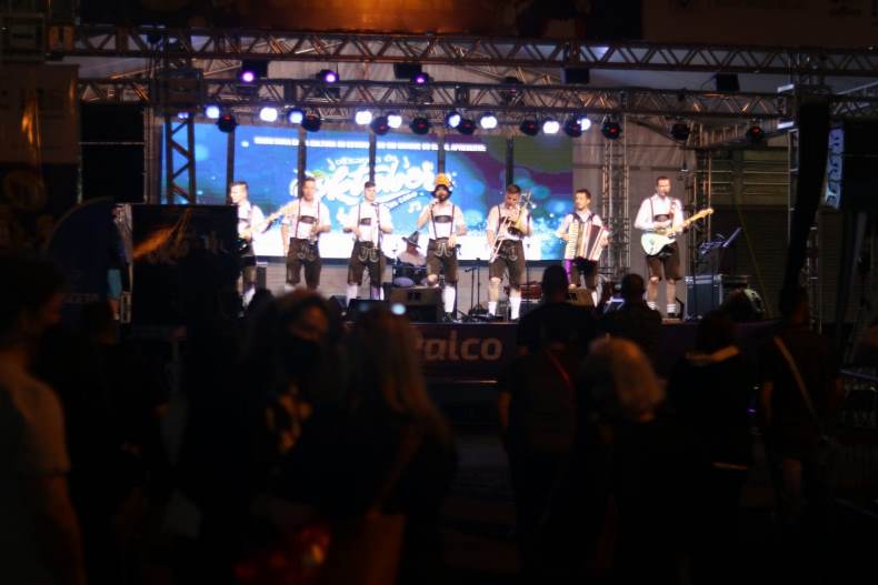 O vocalista da primeira banda a se apresentar, a Super Banda Santa Cruz, agradeceu a oportunidade. “Temos a honra de levar o nome germânico e também a música germânica para todos cantos desse país. Participamos de todas edições, esse formato de agora é um tanto quanto diferente, mas estamos nos adaptando”, comentou Jacson Rodrigo Elesbão. Obedecendo as regras de distanciamento, um bom público prestigiou a apresentação da banda. Quem passou por lá recebeu brindes do Grupo Gazeta de Comunicações.