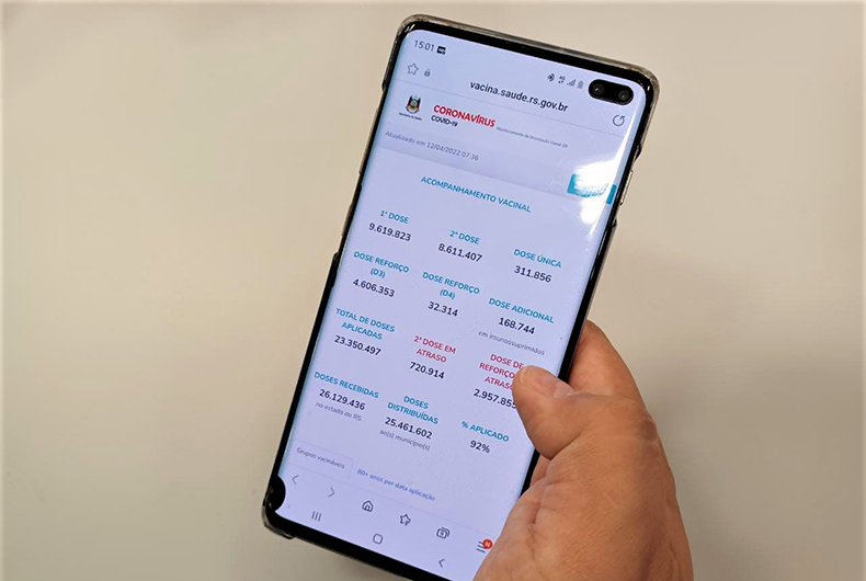 O painel da vacinação contra o coronavírus no Estado apresenta, a partir desta semana, uma nova forma de informar os dados relativos a pessoas consideradas com esquema vacinal completo. Até então, eram apresentadas as pessoas com duas doses ou dose única recebidas. A partir de agora, para adultos, isso passa a valer para quem recebeu a dose de reforço. Atualmente, no Estado, 50% da população adulta é considerada com esquema completo, ou seja, com a dose de reforço recebida.