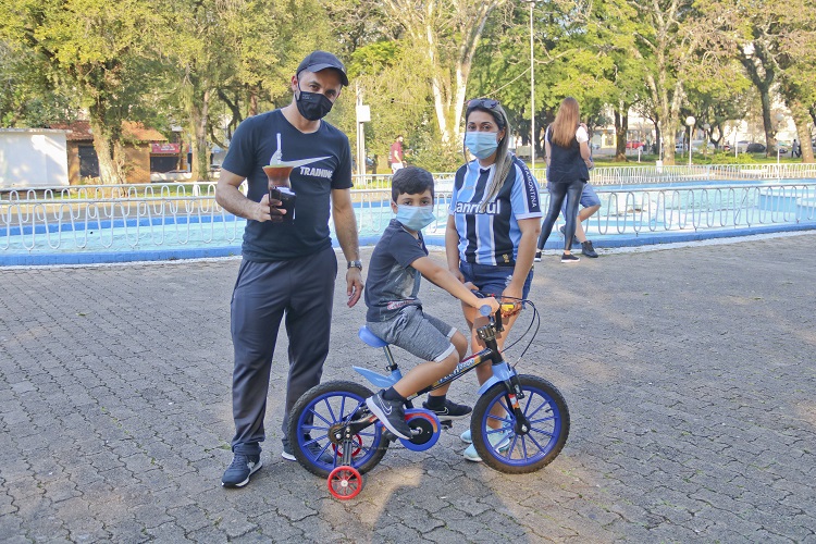 Juliano Dias e Suziane Oliveira Giongo levaram o filho Lucas para andar de bicicleta